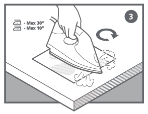 표면에 뜨거운 다리미를 올려놓고 10초 이상 문질러줍니다.